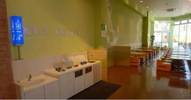 ↑這是為媽媽照顧嬰幼兒而設(shè)的嬰兒室。內(nèi)有哺乳室、換尿不濕臺(tái)等。