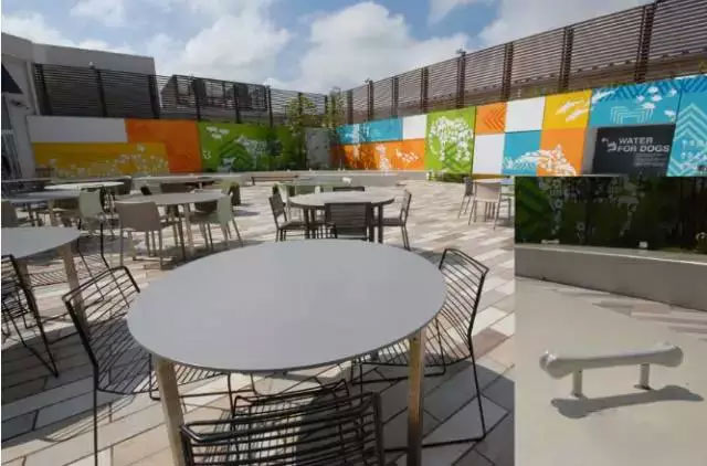 ↑木更津三井奧特萊斯購(gòu)物城是一座海濱小鎮(zhèn),很多日本人會(huì)帶狗前來(lái),這是專(zhuān)門(mén)開(kāi)辟的狗與主人的共同休息區(qū)——栓狗樁也很有創(chuàng)意