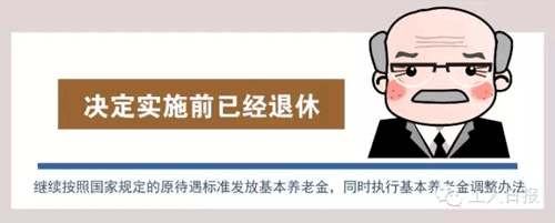 決定實施前已經(jīng)退休的人員,繼續(xù)按照國家規(guī)定的原待遇標準發(fā)放基本養(yǎng)老金,同時執(zhí)行基本養(yǎng)老金調(diào)整辦法。